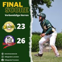 Die Cavemen starteten stark in das Spiel und konnten durch den Homerun durch Third-Baseman Lennart Aichelmann im 3. Inning den Spielstand auf 14:11 ausbauen. Im 4. Inning wendete sich das Blatt als auch bei den Mohawks der erste Homerun des Tages geschlagen wurde. Nach diesem Inning konnten die Cavemen die Führung erst im 7. Inning mit 21:20 wieder ergattern. Jedoch blieb dieser kleine Erfolg nicht lange und die Mohawks holten sich die Führung im 8. Inning direkt wieder. Durch ein geschicktes Doubleplay der Mohawks im 9. Inning wurde das Spiel nach über 4 Stunden Spielzeit beendet. Die Cavemen verloren dadurch knapp mit 23:26.