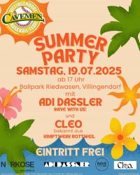 Zum ersten Mal in der Vereinsgeschichte wird es eine Summer Party geben ☀️????????Wir laden ein zu einem Abend voll Summer Feeling, gemütlicher Atmosphäre und einer Bar aus unserem Vereinsheim heraus, welche (hoffentlich) keine Wünsche offen lässt