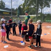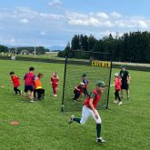 Nach einem spielerischen Warm-Up mit Laufübungen starteten die Kinder mit dem Einwerfen in Zweierteams, um erste Ballkontakte zu üben. Besonders viel Spaß bereitete das Spiel „Hit the Helmet“, bei dem es auf Präzision ankam: Die Kinder versuchten, mit gezielten Würfen Helme vom Tisch zu befördern. Beim abschließenden Wettbewerb stand Geschwindigkeit im Vordergrund – mit einer Radarpistole wurden die Wurfgeschwindigkeiten gemessen. Einige Nachwuchstalente erreichten beeindruckende Werte von bis zu 90 km/h.