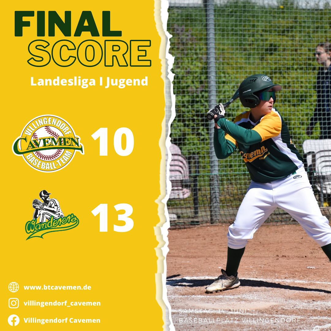 Im ersten Inning spielten die Gäste groß auf und konnten 7 Runs durch gutes Hitting erzielen. In den nachfolgenden Innings konnten die Höhlenmenschen durch eine saubere Defense gut verteidigen und gaben erlaubten kaum Punkte. Auf der offensiven Seite der Cavemen lief es an dem Tag leider etwas Mau. Catcher Patrick Jäkle konnte mit einem Two Base Hit seinen Pitcher Fabian Angst nach Hause bringen.